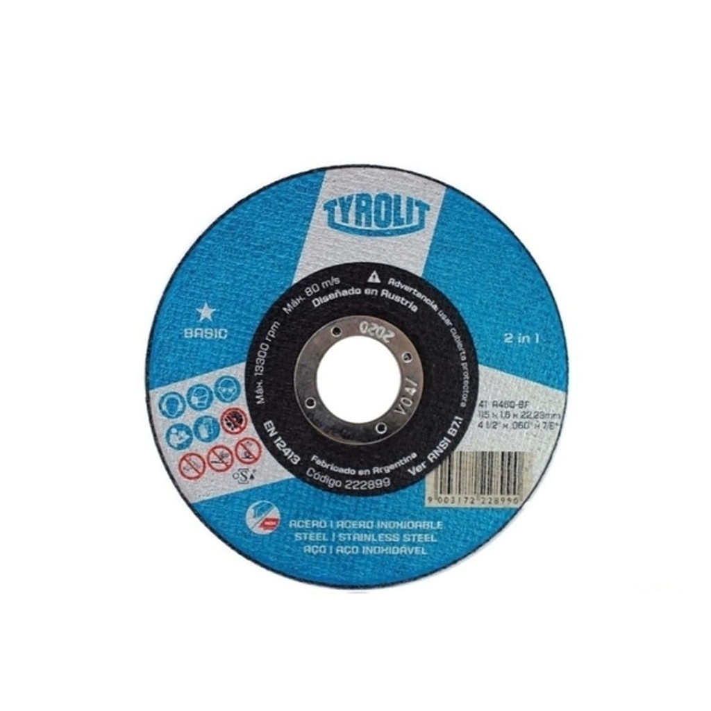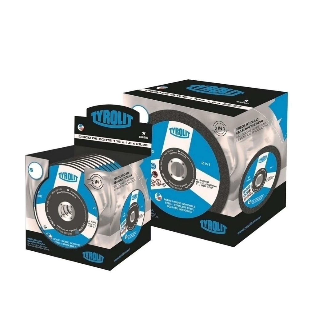 - Los discos abrasivos TYROLIT BASIC 2 en 1 son discos de corte universal para el trabajo de chapas, perfiles, tubos, barras y material macizo.