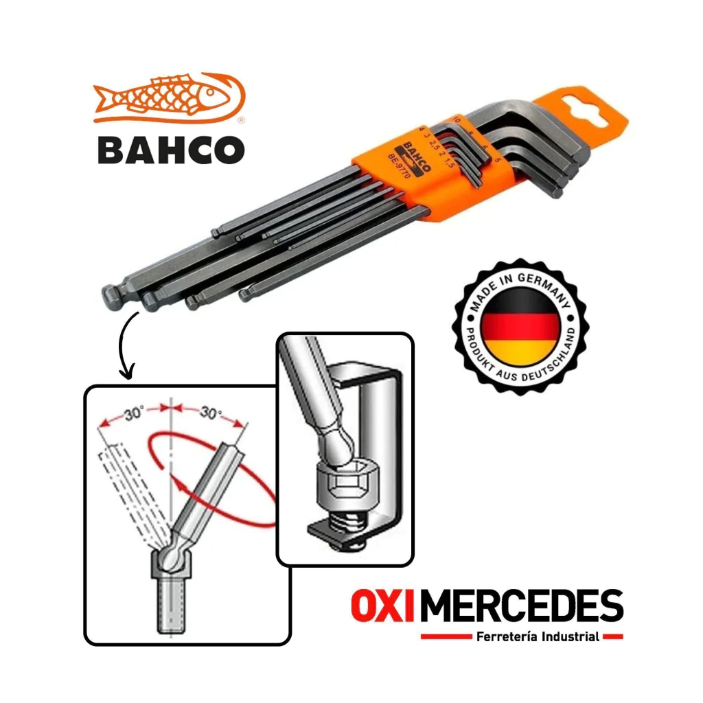 Descubrí la calidad y precisión de Bahco con este práctico juego de llaves allen hexagonales que incluye 9 piezas en sistema métrico, desde 1.5 mm hasta 10 mm.